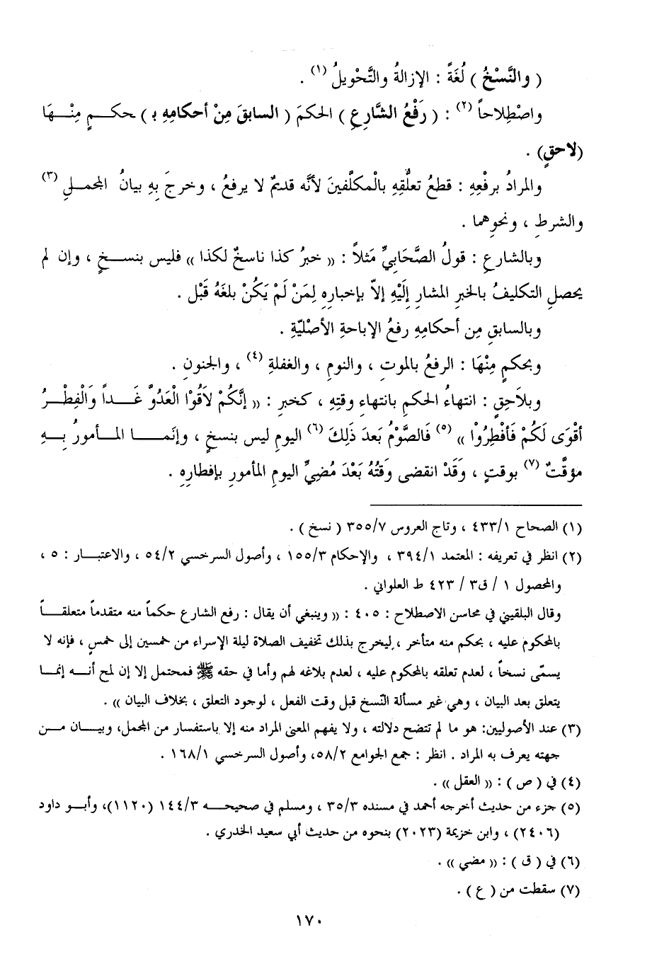 (¬2) انظر في تعريفه: المعتمد 1/ 394، والإحكام 3/ 155، وأصول السرخسي 2/ 54، والاعتبار: 5، والمحصول 1 / ق3/ 423 ط العلواني.
