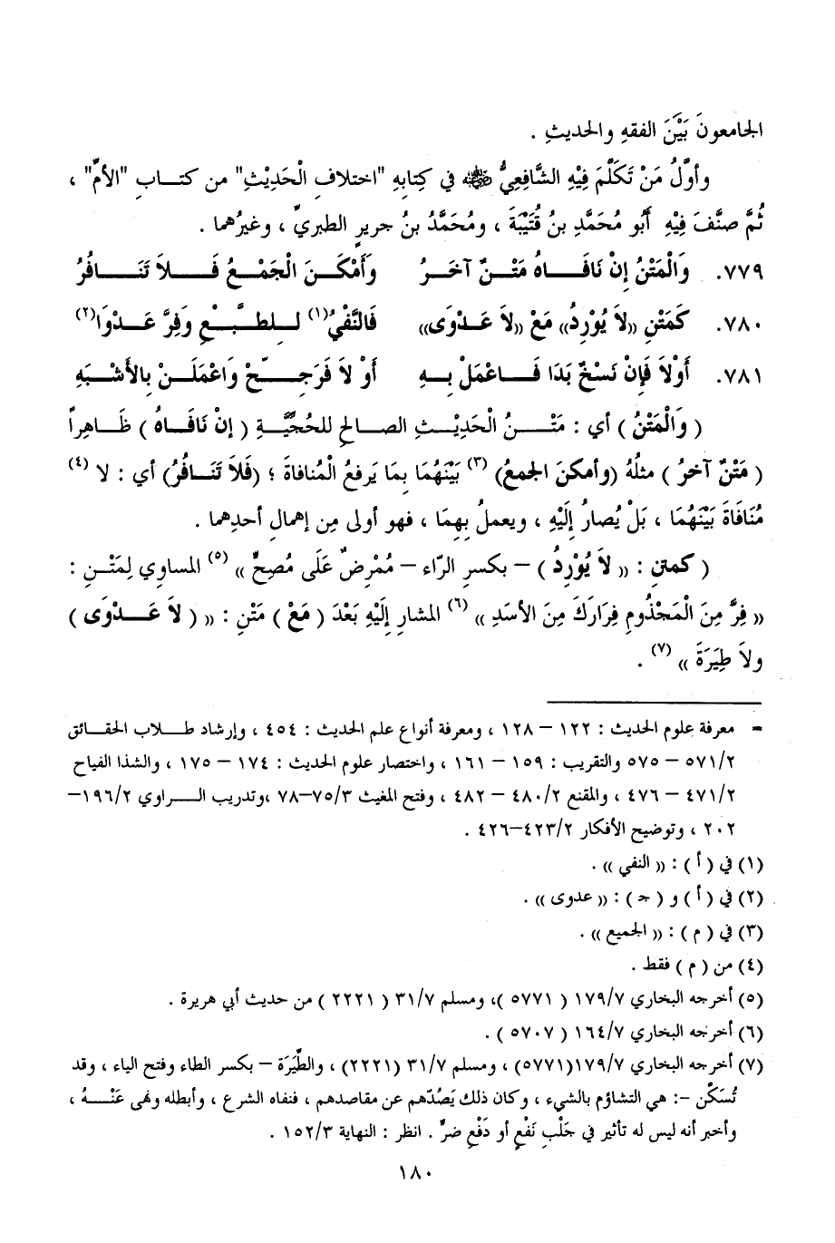 780 - كَمَتْنِ ((لاَ يُوْرِدُ)) مَعْ ((لاَ عَدْوَى)) ... فَالنَّفْيُ (¬1) لِلطَّبْعِ وَفِرَّ عَدْوَا (¬2)