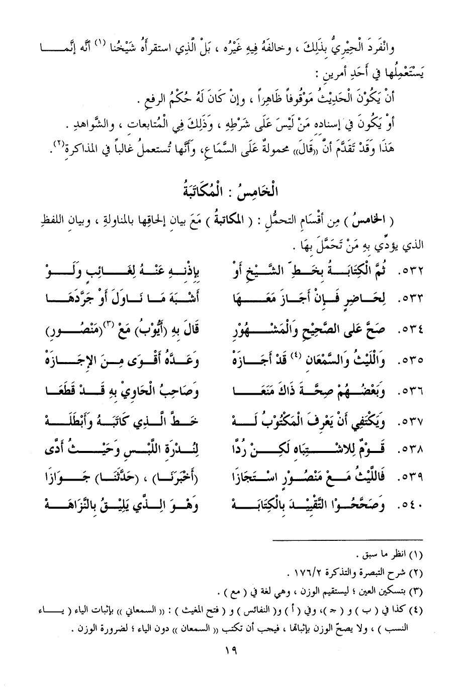 (¬4) كذا في (ب) و (ج)، وفي (أ) و (النفائس) و (فتح المغيث): ((السمعاني)) بإثبات الياء (ياء النسب)، ولا يصحّ الوزن بإثباتها، فيجب أن تكتب ((السمعان)) دون الياء؛ لضرورة الوزن.