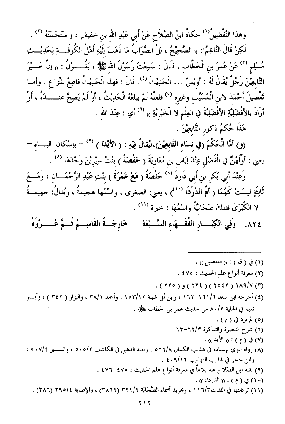 824 - وَفِي الكِبَارِ الفُقَهَاءِ السَّبْعَهْ ... خَارِجَةُ القَاسِمُ ثُمَّ عُرْوَهْ