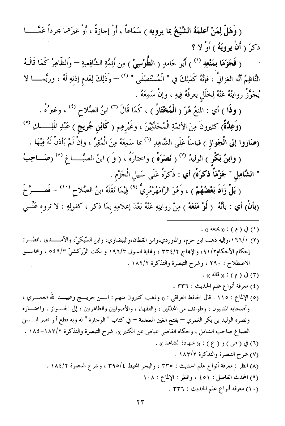 (¬5) الإلماع: 115. قال الحافظ العراقي: ((وذهب كثيرون منهم: ابن جريج وعبيد الله العمري، وأصحابه المدنيون، وطوائف من المحدّثين، والفقهاء، والأصوليين والظاهريين، إلى الجواز. واختاره ونصره الوليد بن بكر الغمري - بفتح الغين المعجمة - في كتاب " الوجازة " له وبه قطع أبو نصر ابن الصباغ صاحب الشامل، وحكاه القاضي عياض عن الكثير)). شرح التبصرة والتذكرة 2/ 183 - 184.