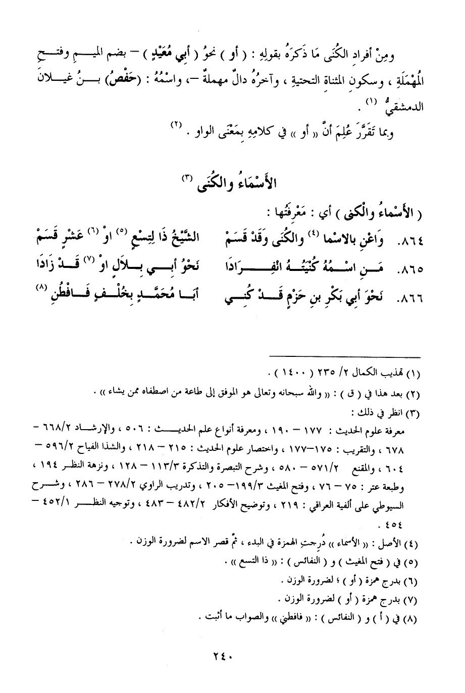 864 - وَاعْنِ بالاسْما (¬4) والكُنَى وَقَدْ قَسَمْ ... الشَّيْخُ ذَا لِتِسْعٍ (¬5) اوْ (¬6) عَشْرٍ قَسَمْ