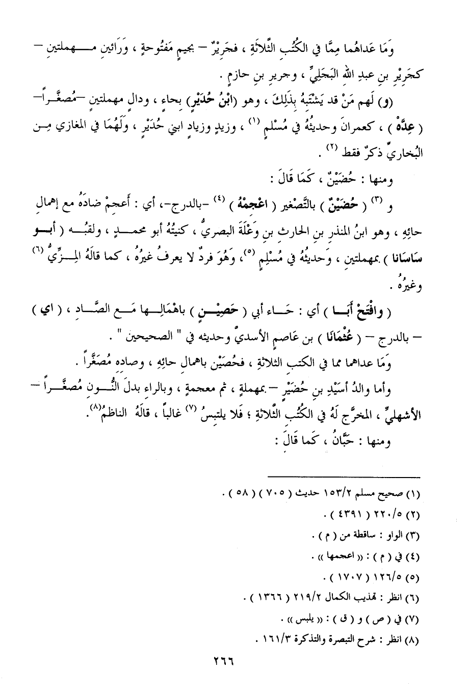 وَمَا عداهما مما في الكتبِ الثلاثةِ، فحُصَيْن باهمالِ حائِهِ، وصادِهِ مُصَغَّراً.