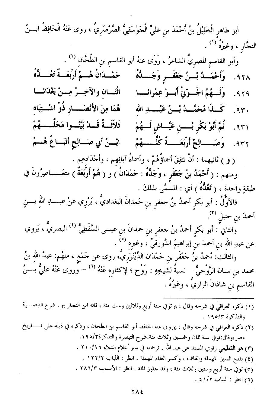 928 - وَأَحْمَدُ بْنُ جَعْفَرٍ وَجَدُّهُ ... حَمْدَانُ هُمْ أَرْبَعَةٌ تَعُدُّهُ