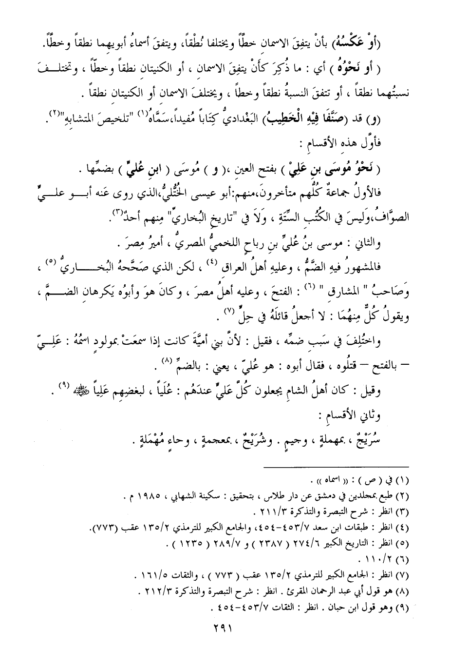 (و) قد (صَنَّفَا فِيْهِ الْخَطِيبُ) البَغْداديُّ كِتَاباً مُفيداً، سَمَّاهُ (¬1) "تلخيصَ المتشابِهِ" (¬2).