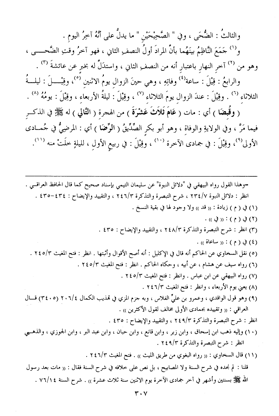 (¬9) وهو قول الواقدي، وعمرو بن عليِّ الفلاس، وبه جزم المزي في تهذيب الكمال 4/ 206 (3405) قال العراقي: ((وتقييده بجمادى الأولى مخالف لقول الأكثرين)).