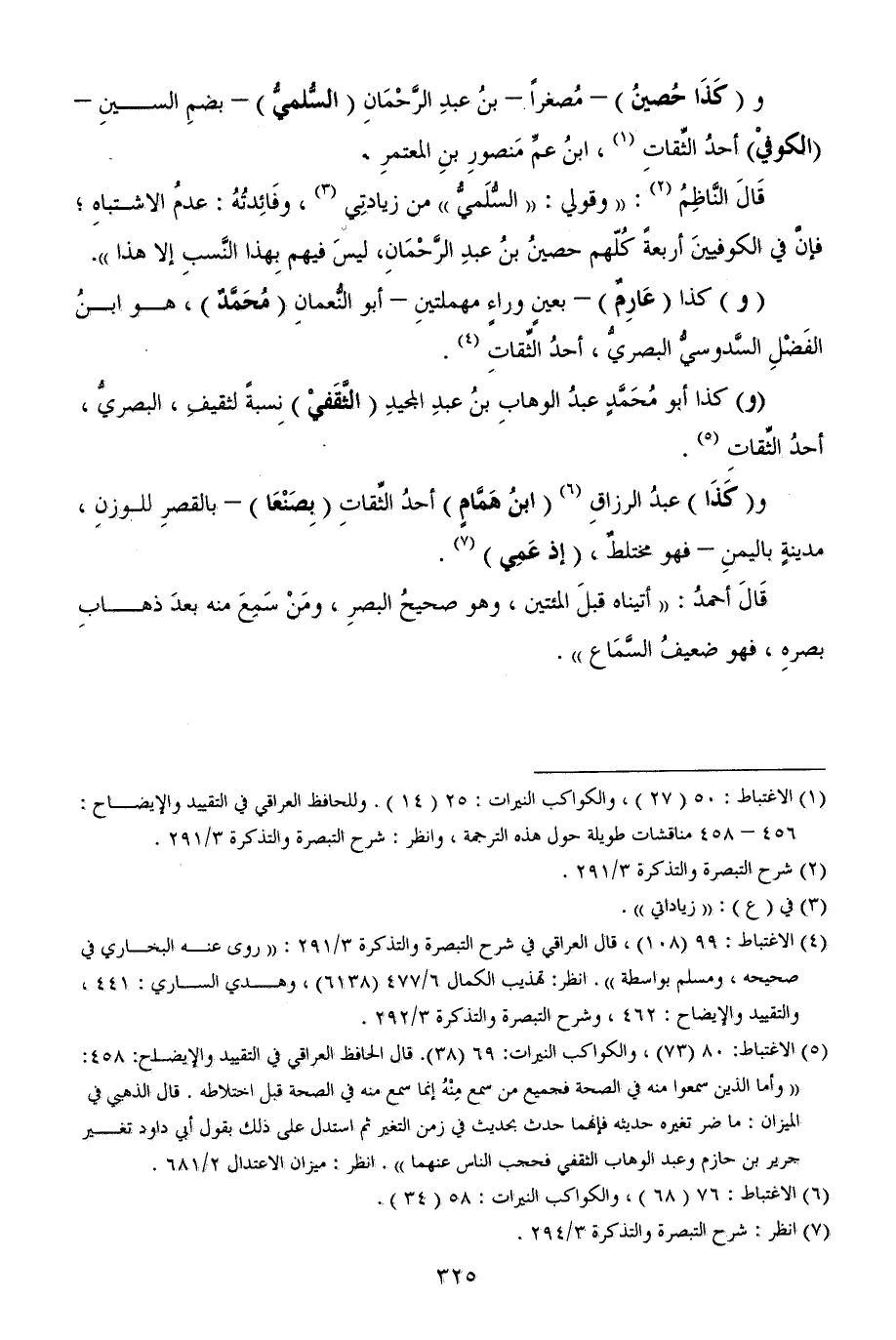 قَالَ النَّاظِمُ (¬2): ((وقولي: ((السُّلَميُّ)) من زيادتِي (¬3)، وفَائِدتُهُ: عدمُ الاشتباهِ؛ فإنَّ في الكوفيينَ أربعةً كُلّهم حصينُ بنُ عبدِ الرَّحْمَانِ، ليسَ فيهم بِهذا النَّسبِ إلا هذا)).