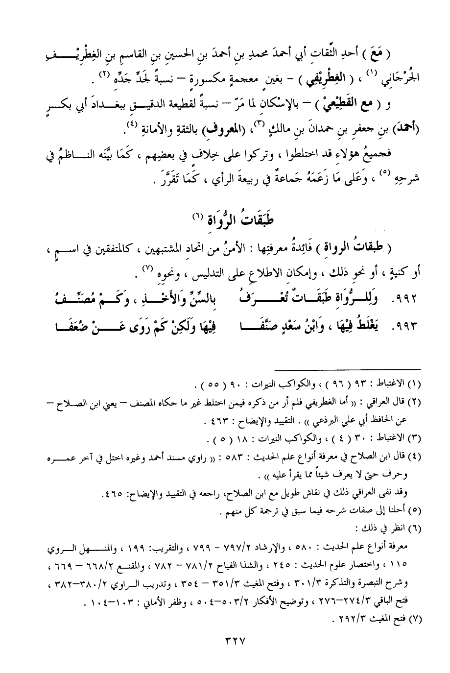 992 - وَلِلرُّوَاةِ طَبَقَاتٌ تُعْرَفُ ... بِالسِّنِّ وَالأَخْذِ، وَكَمْ مُصَنِّفُ