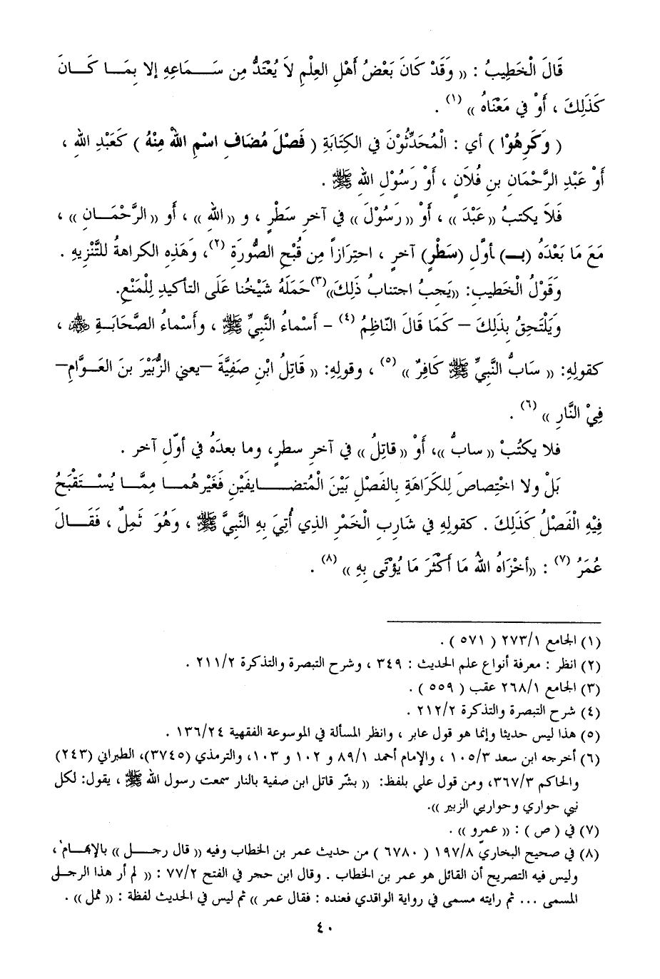 (¬2) انظر: معرفة أنواع علم الحديث: 349، وشرح التبصرة والتذكرة 2/ 211.