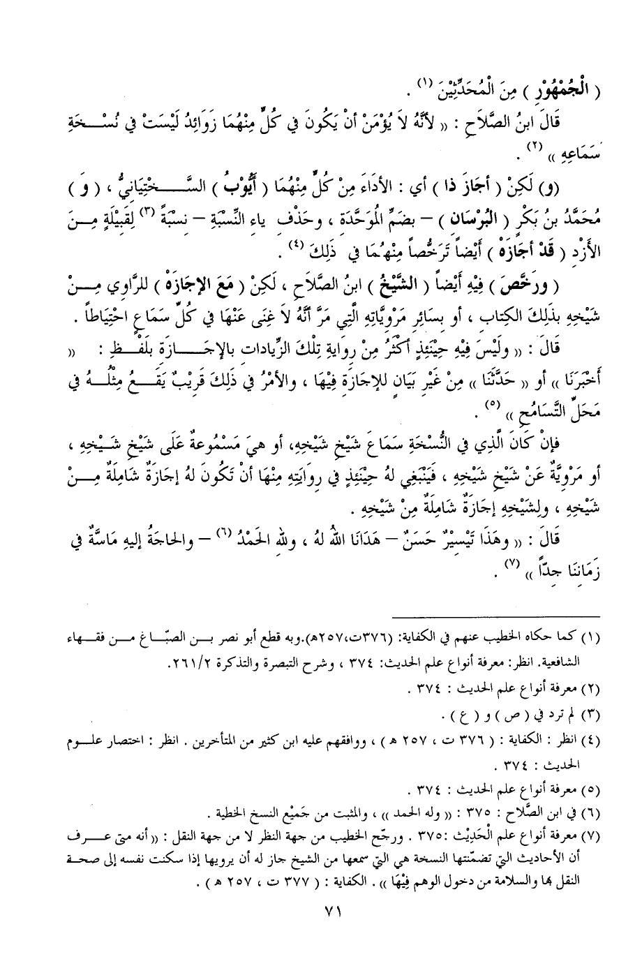 (¬1) كما حكاه الخطيب عنهم في الكفاية: (376ت، 257هـ). وبه قطع أبو نصر بن الصبّاغ من فقهاء الشافعية. انظر: معرفة أنواع علم الحديث: 374، وشرح التبصرة والتذكرة 2/ 261.
