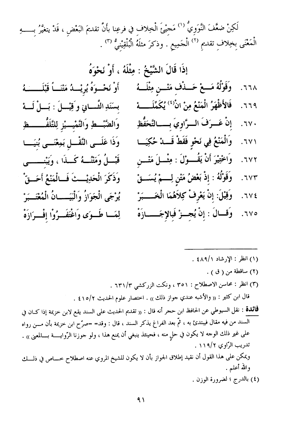 668 - وَقَوْلُهُ مَعْ حَذْفِ مَتْنٍ مِثْلَهُ ... أَوْ نَحْوَهُ يُرِيْدُ مَتْنَاً قَبْلَهُ