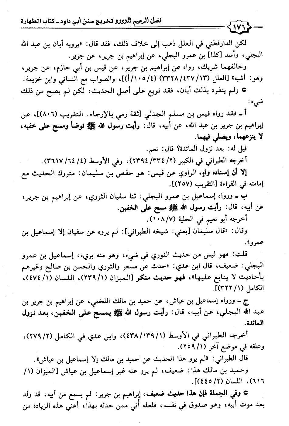 ب- ورواه إسماعيل بن عمرو البجلي: ثنا سفيان الثوري، عن إبراهيم بن جرير، عن أبيه، قال: رأيت رسول الله - صلى الله عليه وسلم - مسح على الخفين.