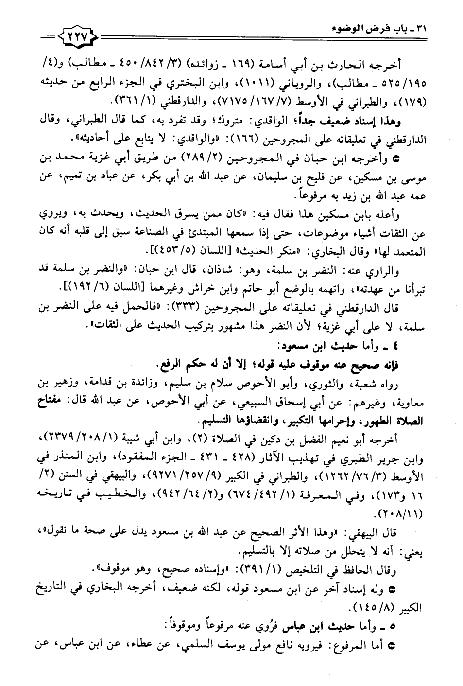 رواه شعبة، والثوري، وأبو الأحوص سلام بن سليم، وزائدة بن قدامة، وزهير بن معاوية، وغيرهم: عن أبي إسحاق السبيعي، عن أبي الأحوص، عن عبد الله قال: مفتاح الصلاة الطهور، وإحرامها التكبير، وانقضاؤها التسليم.
