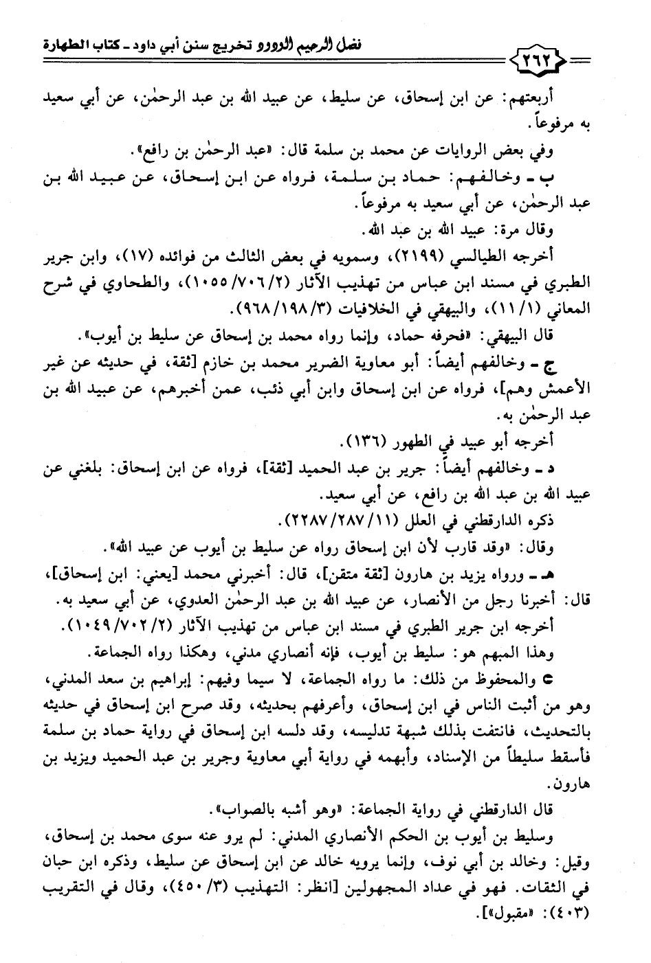 د- وخالفهم أيضًا: جرير بن عبد الحميد [ثقة]، فرواه عن ابن إسحاق: بلغني عن عبيد الله بن عبد الله بن رافع، عن أبي سعيد.