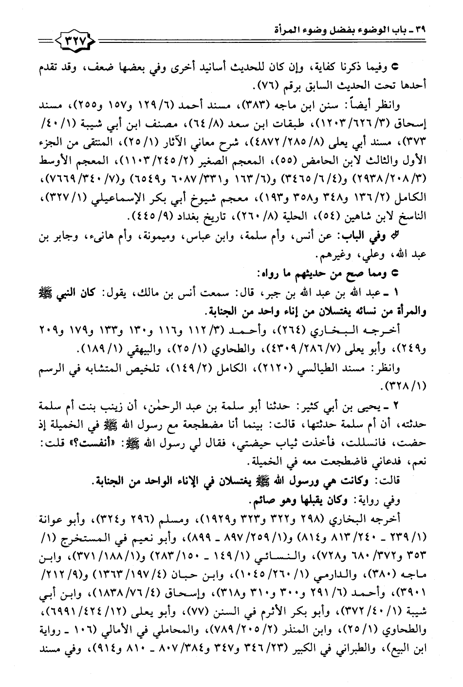 • وفيما ذكرنا كفاية، وإن كان للحديث أسانيد أخرى وفي بعضها ضعف، وقد تقدم أحدها تحت الحديث السابق برقم (٧٦).