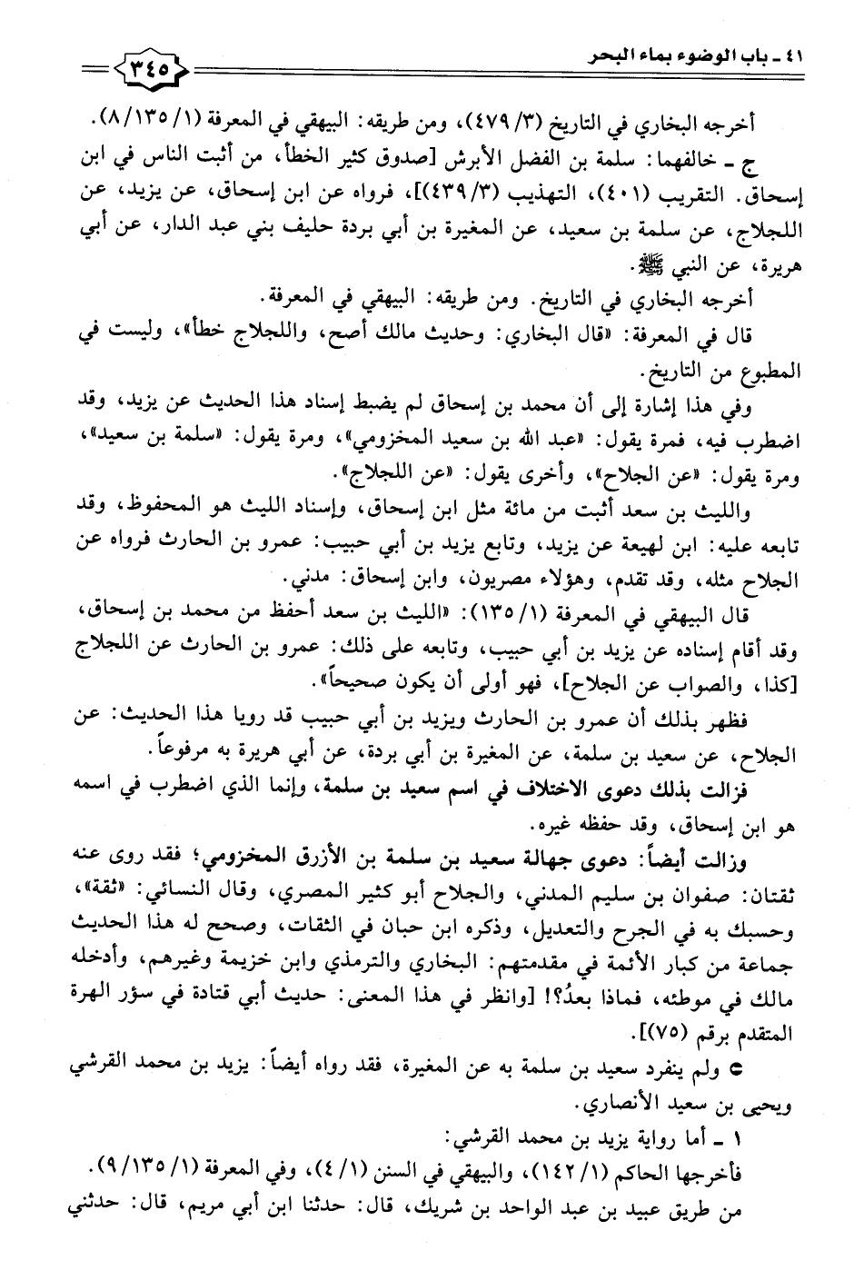 وزالت أيضًا: دعوى جهالة سعيد بن سلمة بن الأزرق المخزومي؛ فقد روى عنه ثقتان: صفوان بن سليم المدني، والجلاح أبو كثير المصري، وقال النسائي: "ثقة"، وحسبك به في الجرح والتعديل، وذكره ابن حبان في الثقات، وصحح له هذا الحديث جماعة من كبار الأئمة في مقدمتهم: البخاري والترمذي وابن خزيمة وغيرهم، وأدخله مالك في موطئه، فماذا بعدُ؟! [وانظر في هذا المعنى: حديث أبي قتادة في سؤر الهرة المتقدم برقم (٧٥)].