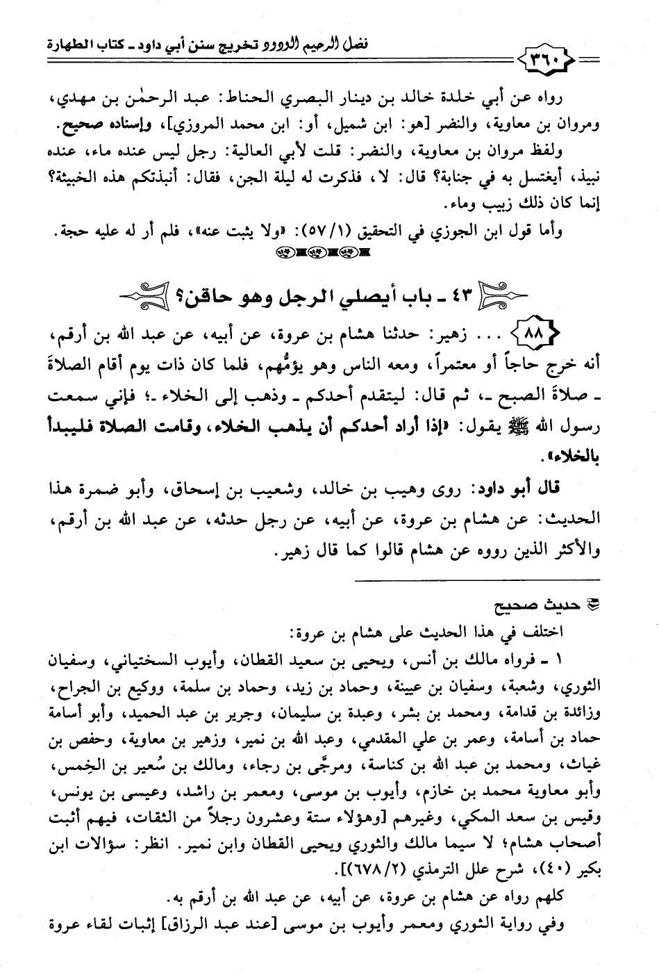 قال أبو داود: روى وهيب بن خالد، وشعيب بن إسحاق، وأبو ضمرة هذا الحديث: عن هشام بن عروة، عن أبيه، عن رجل حدثه، عن عبد الله بن أرقم، والأكثر الذين رووه عن هشام قالوا كما قال زهير.