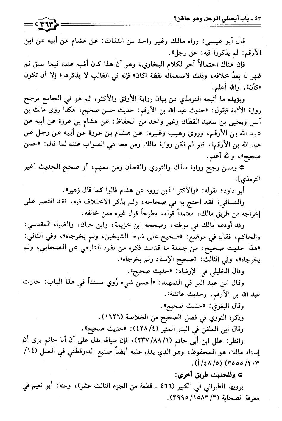 قال أبو عيسى: رواه مالك وغير واحد من الثقات: عن هشام عن أبيه عن ابن الأرقم: لم يذكروا فيه: عن رجل".