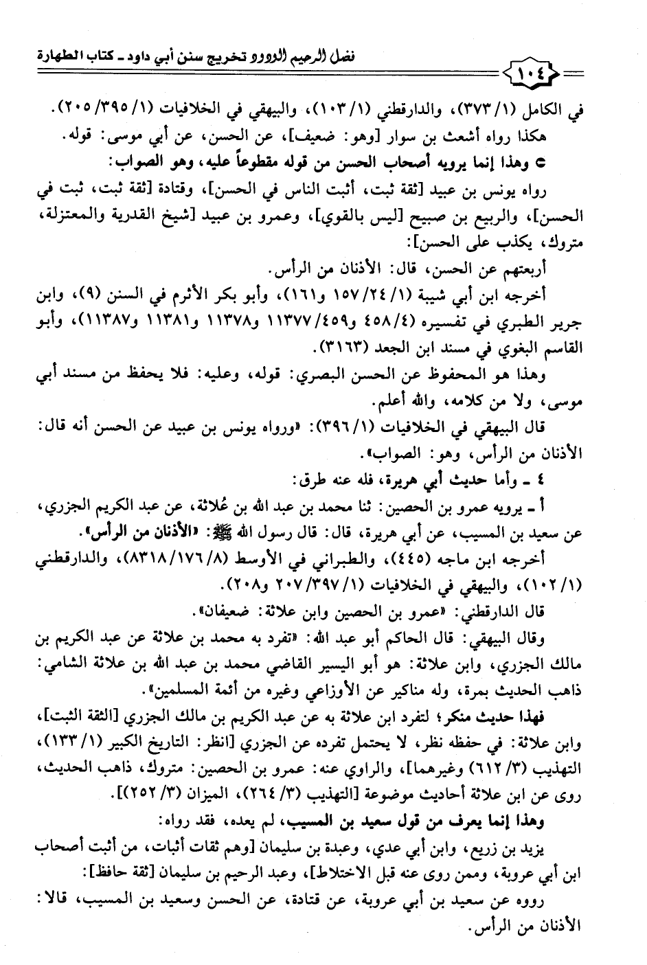 قال البيهقي في الخلافيات (١/ ٣٩٦): "ورواه يونس بن عبيد عن الحسن أنه قال: الأذنان من الرأس، وهو: الصواب".