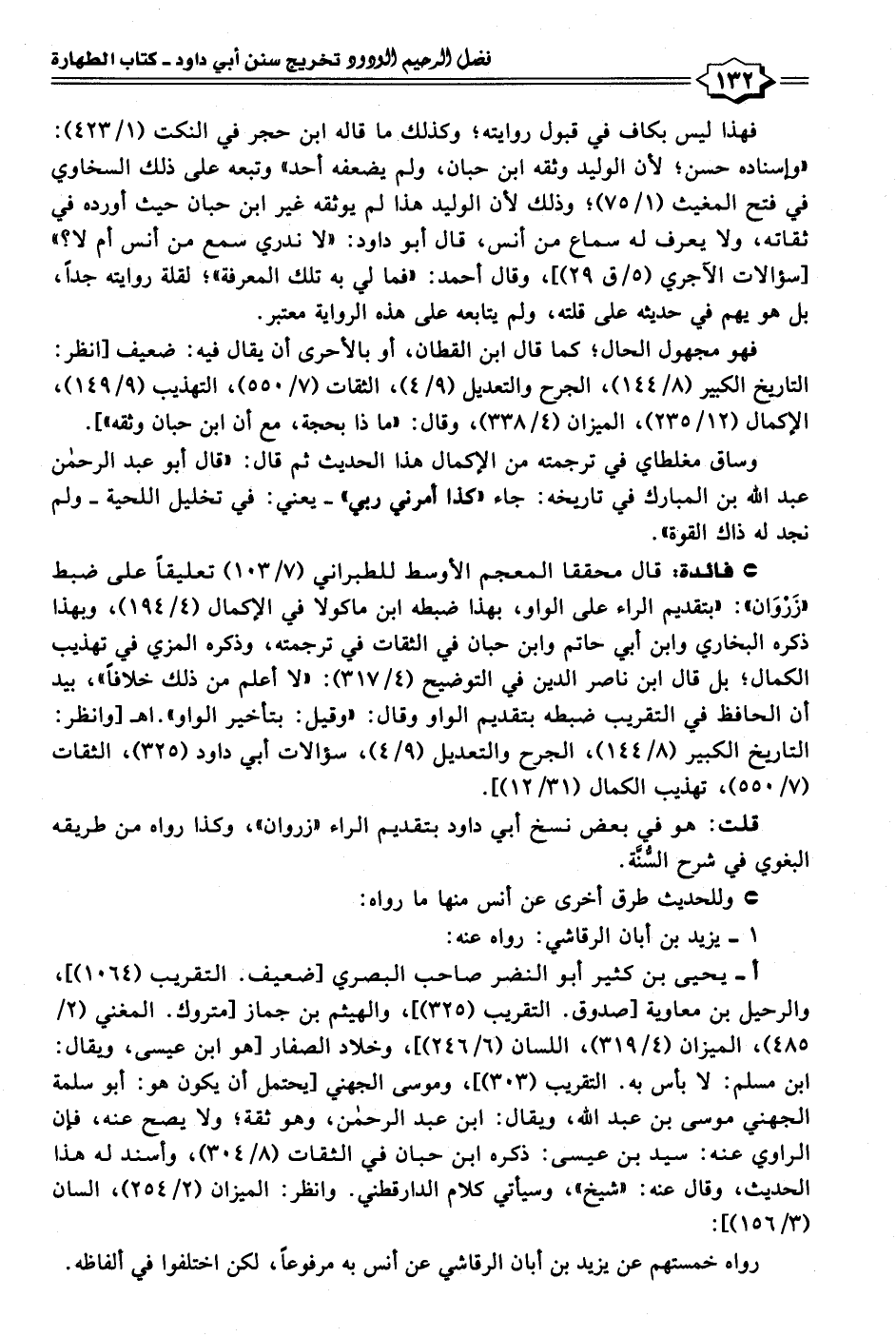 • فائدة: قال محققا المعجم الأوسط للطبراني (٧/ ١٠٣) تعليقًا على ضبط "زَرْوَان": "بتقديم الراء على الواو، بهذا ضبطه ابن ماكولا في الإكمال (٤/ ١٩٤)، وبهذا ذكره البخاري وابن أبي حاتم وابن حبان في الثقات في ترجمته، وذكره المزي في تهذيب الكمال؛ بل قال ابن ناصر الدين في التوضيح (٤/ ٣١٧): "لا أعلم من ذلك خلافًا"، بيد أن الحافظ في التقريب ضبطه بتقديم الواو وقال: "وقيل: بتأخير الواو". اهـ[وانظر: التاريخ الكبير (٨/ ١٤٤)، الجرح والتعديل (٩/ ٤)، سؤالات أبي داود (٣٢٥)، الثقات (٧/ ٥٥٠)، تهذيب الكمال (٣١/ ١٢)].