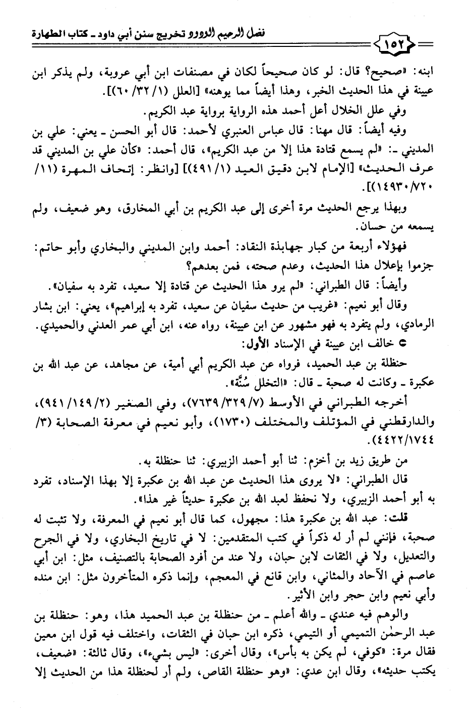 حنظلة بن عبد الحميد، فرواه عن عبد الكريم أبي أمية، عن مجاهد، عن عبد الله بن عكبرة -وكانت له صحبة- قال: "التخلل سُنَّة".