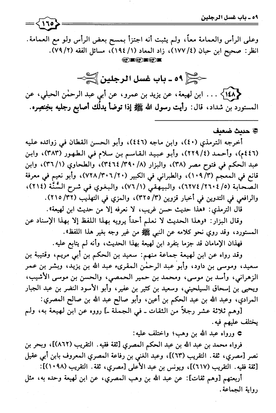 ١٤٨ - . . . ابن لهيعة، عن يزيد بن عمرو، عن أبي عبد الرحمن الحبلي، عن المستورد بن شداد، قال: رأيت رسول الله - صلى الله عليه وسلم - إذا توضأ يدلُك أصابع رجليه بخِنصِره.