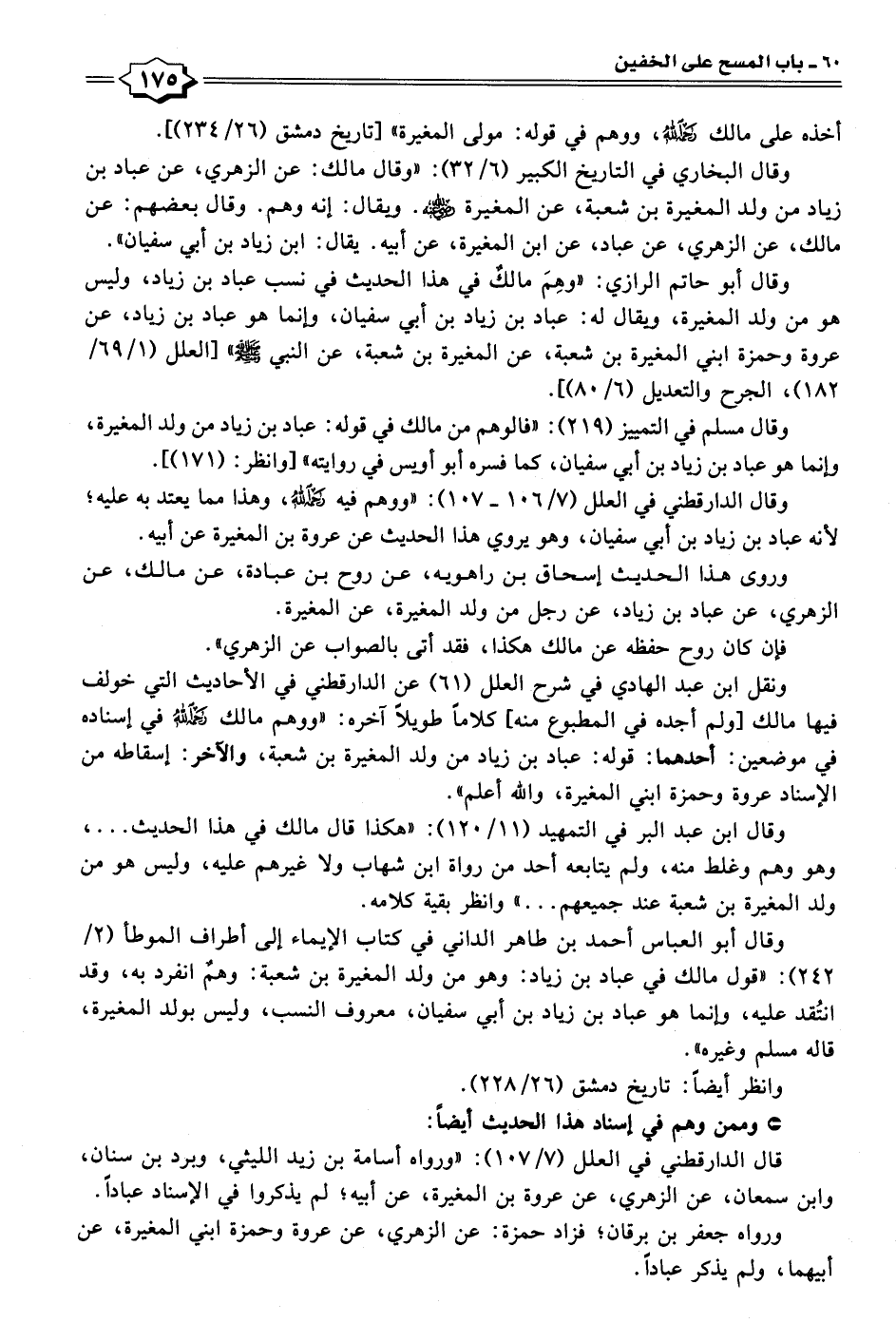 ونقل ابن عبد الهادي في شرح العلل (٦١) عن الدارقطني في الأحاديث التي خولف فيها مالك [ولم أجده في المطبوع منه، كلامًا طويلًا آخره: "ووهم مالك رحمه الله في إسناده في موضعين: أحدهما: قوله: عباد بن زياد من ولد المغيرة بن شعبة، والآخر: إسقاطه من الإسناد عروة وحمزة ابني المغيرة، والله أعلم".