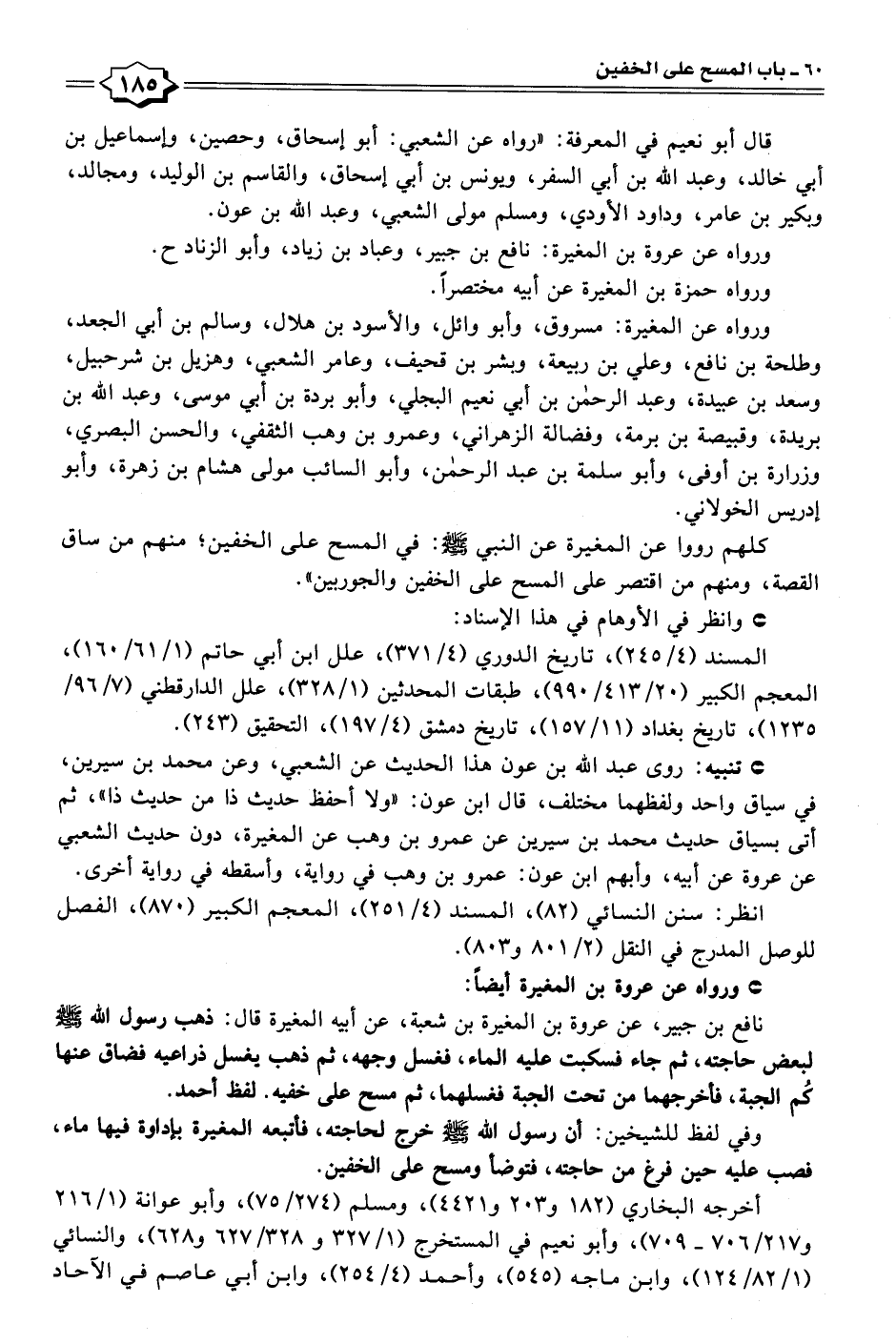 كلهم رووا عن المغيرة عن النبي - صلى الله عليه وسلم -: في المسح على الخفين؛ منهم من ساق القصة، ومنهم من اقتصر على المسح على الخفين والجوربين".