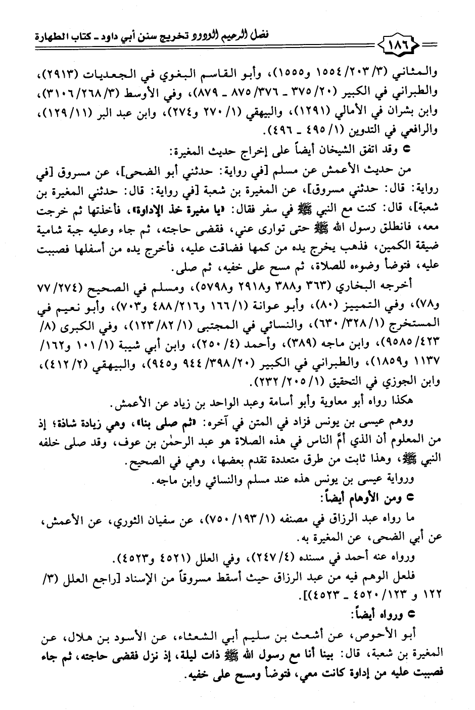 أخرجه البخاري (٣٦٣ و ٣٨٨ و ٢٩١٨ و ٥٧٩٨)، ومسلم في الصحيح (٢٧٤/ ٧٧ و ٧٨)، وفي التمييز (٨٠)، وأبو عوانة (١/ ١٦٦ و ٢١٦/ ٤٨٨ و ٠٣ ٧)، وأبو نعيم في المستخرج (١/ ٣٢٨/ ٦٣٠)، والنسائي في المجتبى (١/ ٨٢/ ١٢٣)، وفي الكبرى (٨/ ٤٢٣/ ٩٥٨٥)، وابن ماجه (٣٨٩)، وأحمد (٤/ ٢٥٠)، وابن أبي شيبة (١/ ١٠١ و ١٦٢/ ١١٣٧ و ١٨٥٩)، والطبراني في الكبير (٢٠/ ٣٩٨/ ٩٤٤ و ٩٤٥)، والبيهقي (٢/ ٤١٢)، وابن الجوزي في التحقيق (١/ ٢٠٥/ ٢٣٢).