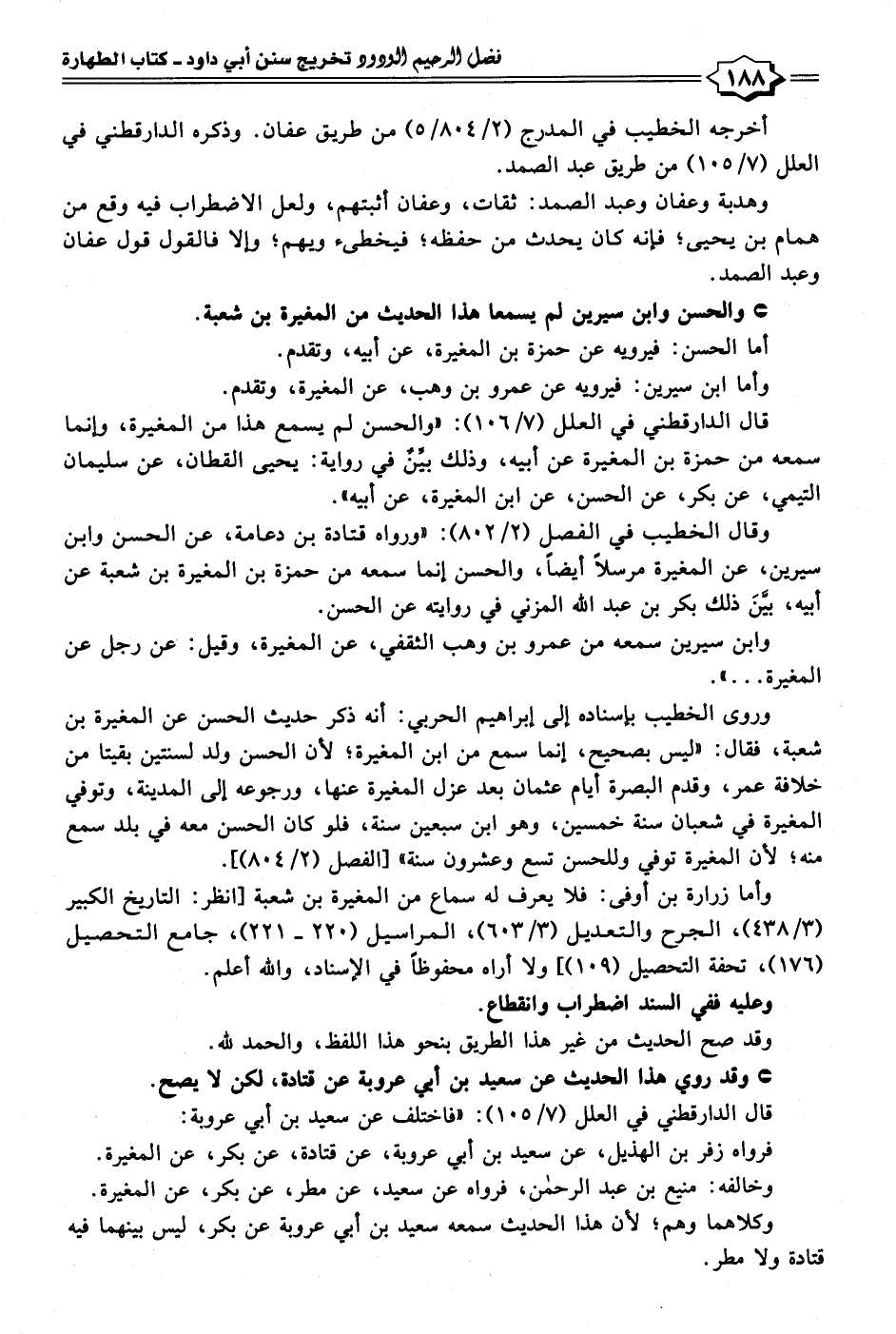 قال الدارقطني في العلل (٧/ ١٠٦): "والحسن لم يسمع هذا من المغيرة، وإنما سمعه من حمزة بن المغيرة عن أبيه، وذلك بيِّنٌ في رواية: يحيى القطان، عن سليمان التيمي، عن بكر، عن الحسن، عن ابن المغيرة، عن أبيه".