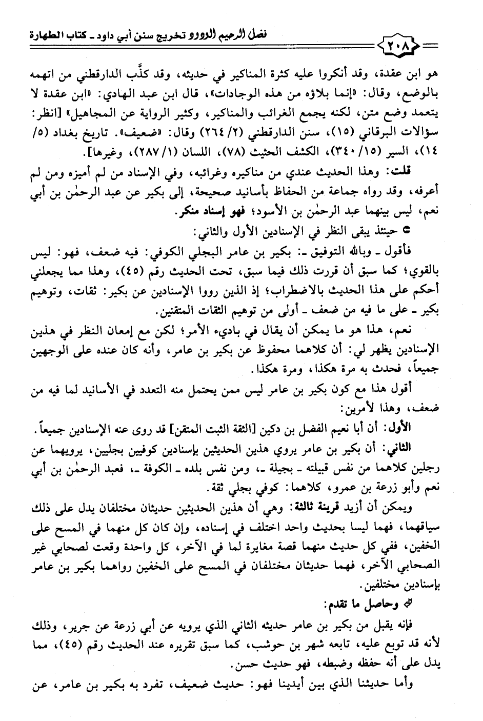 فأقول -وبالله التوفيق-: بكير بن عامر البجلي الكوفي: فيه ضعف، فهو: ليس بالقوي؛ كما سبق أن قررت ذلك فيما سبق، تحت الحديث رقم (٤٥)، وهذا مما يجعلني أحكم على هذا الحديث بالاضطراب؛ إذ الذين رووا الإسنادين عن بكير: ثقات، وتوهيم بكير -على ما فيه من ضعف- أولى من توهيم الثقات المتقنين.