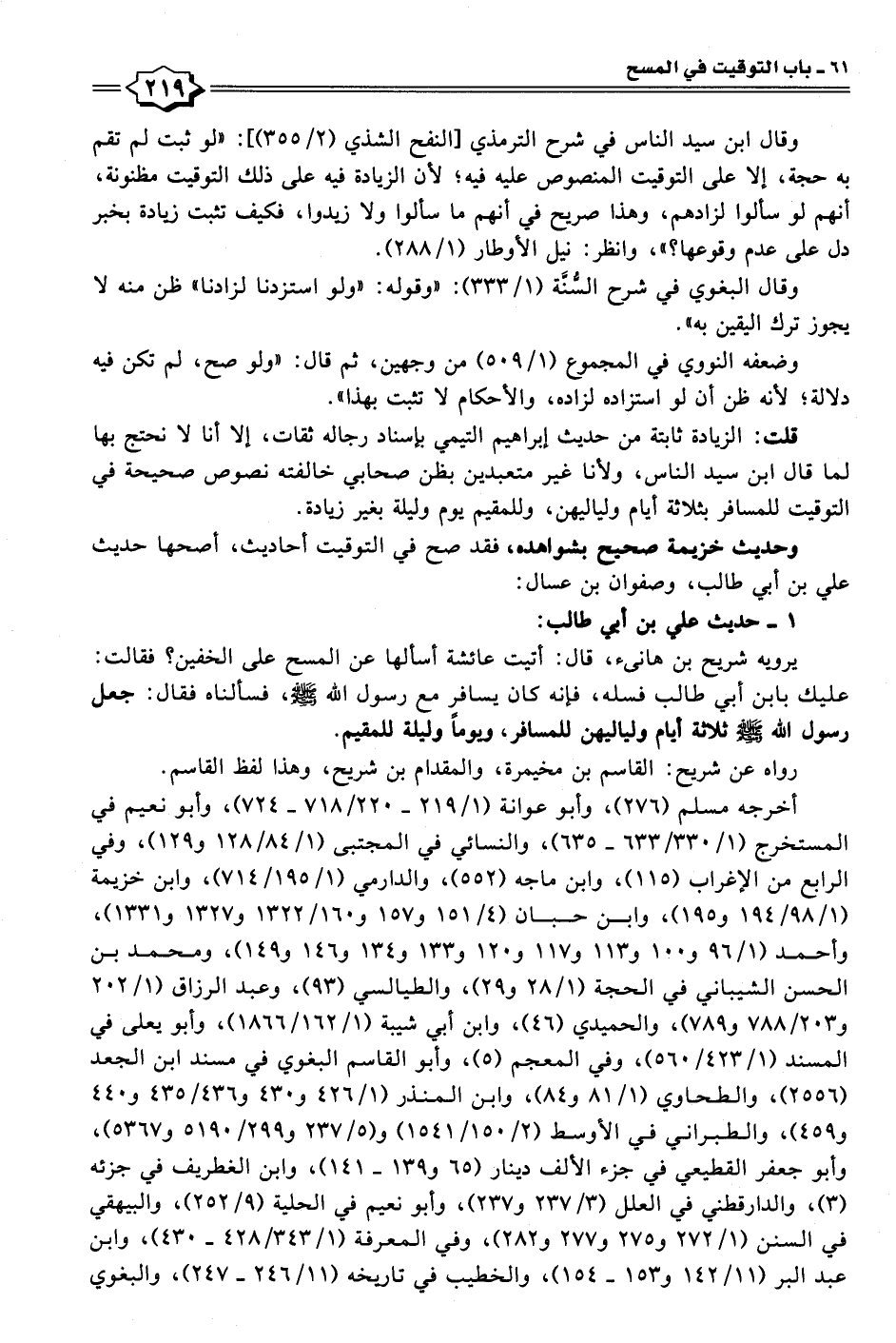 وحديث خزيمة صحيح بشواهده، فقد صح في التوقيت أحاديث، أصحها حديث علي بن أبي طالب، وصفوان بن عسال:
