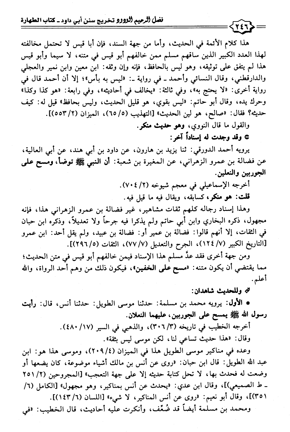 ومن جهة أخرى فقد عدَّ مسلم هذا الإسناد فيمن خالفهم أبو قيس في متن الحديث؛ مما يقتضي أن يكون متنه: "مسح على الخفين"، فيكون ذلك من وهم أحد الرواة، والله أعلم.
