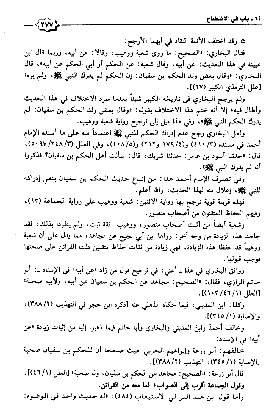 فهذه قرينة قوية ترجح بها رواية الاثنين: شعبة ووهيب على رواية الجماعة (١٣)، وفيهم الحفاظ المتقنون من أصحاب منصور.