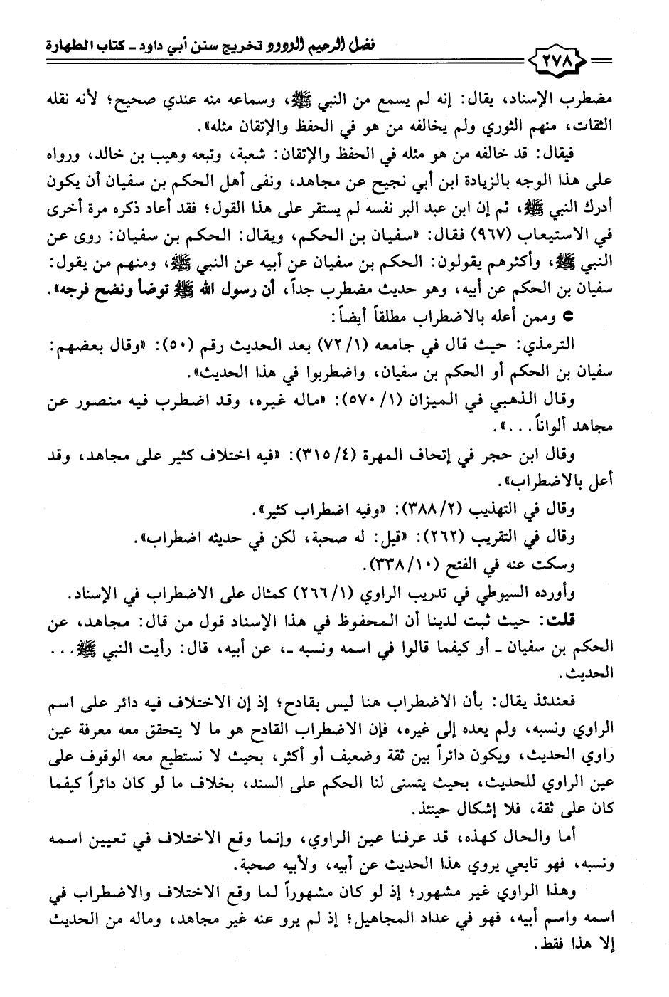 الترمذي: حيث قال في جامعه (١/ ٧٢) بعد الحديث رقم (٥٠): "وقال بعضهم: سفيان بن الحكم أو الحكم بن سفيان، واضطربوا في هذا الحديث".