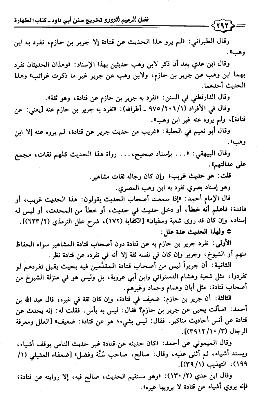 الثانية: أن جريرًا ليس من أصحاب قتادة المقدَّمين فيه بحيث يقبل تفردهم لو تفردوا، مثل شعبة وهشام الدستوائي وابن أبي عروبة، بل وليس هو في منزلة الشيوخ من أصحاب قتادة، مثل أبان وهمام وحماد وغيرهم.