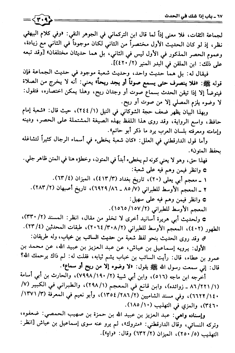 وبهذا البيان يظهر ضعف حجة الشوكاني في النيل (١/ ٢٤٤)، حيث قال: "شعبة إمام حافظ، واسع الرواية، وقد روى هذا اللفظ بهذه الصيغة المشتملة على الحصر، ودينه وإمامته ومعرفته بلسان العرب يردَّ ما ذكر أبو حاتم".