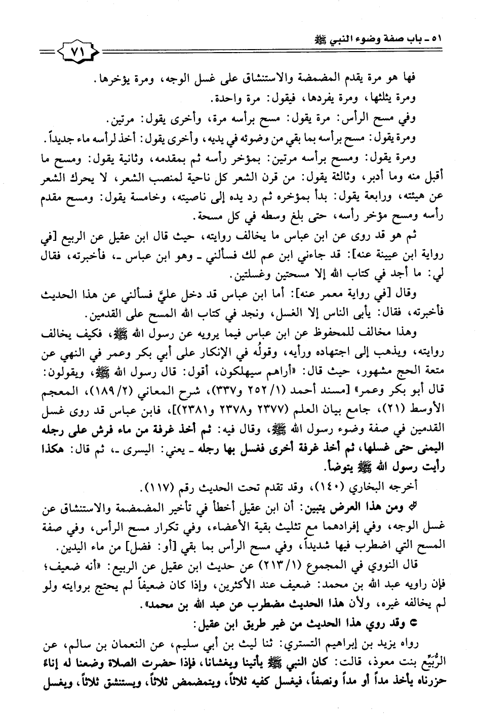 قال النووي في المجموع (١/ ٢١٣) عن حديث ابن عقيل عن الربيع: "أنه ضعيف؛ فإن راويه عبد الله بن محمد: ضعيف عند الأكثرين، وإذا كان ضعيفًا لم يحتج بروايته ولو لم يخالفه غيره، ولأن هذا الحديث مضطرب عن عبد الله بن محمد".
