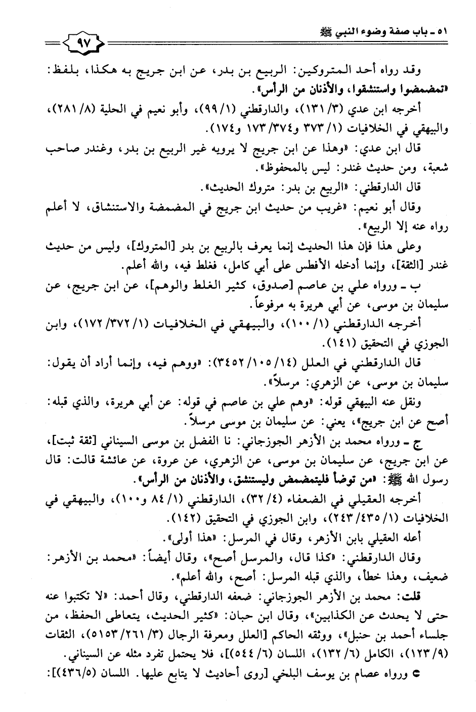وقال أبو نعيم: "غريب من حديث ابن جريج في المضمضة والاستنشاق، لا أعلم رواه عنه إلا الربيع".