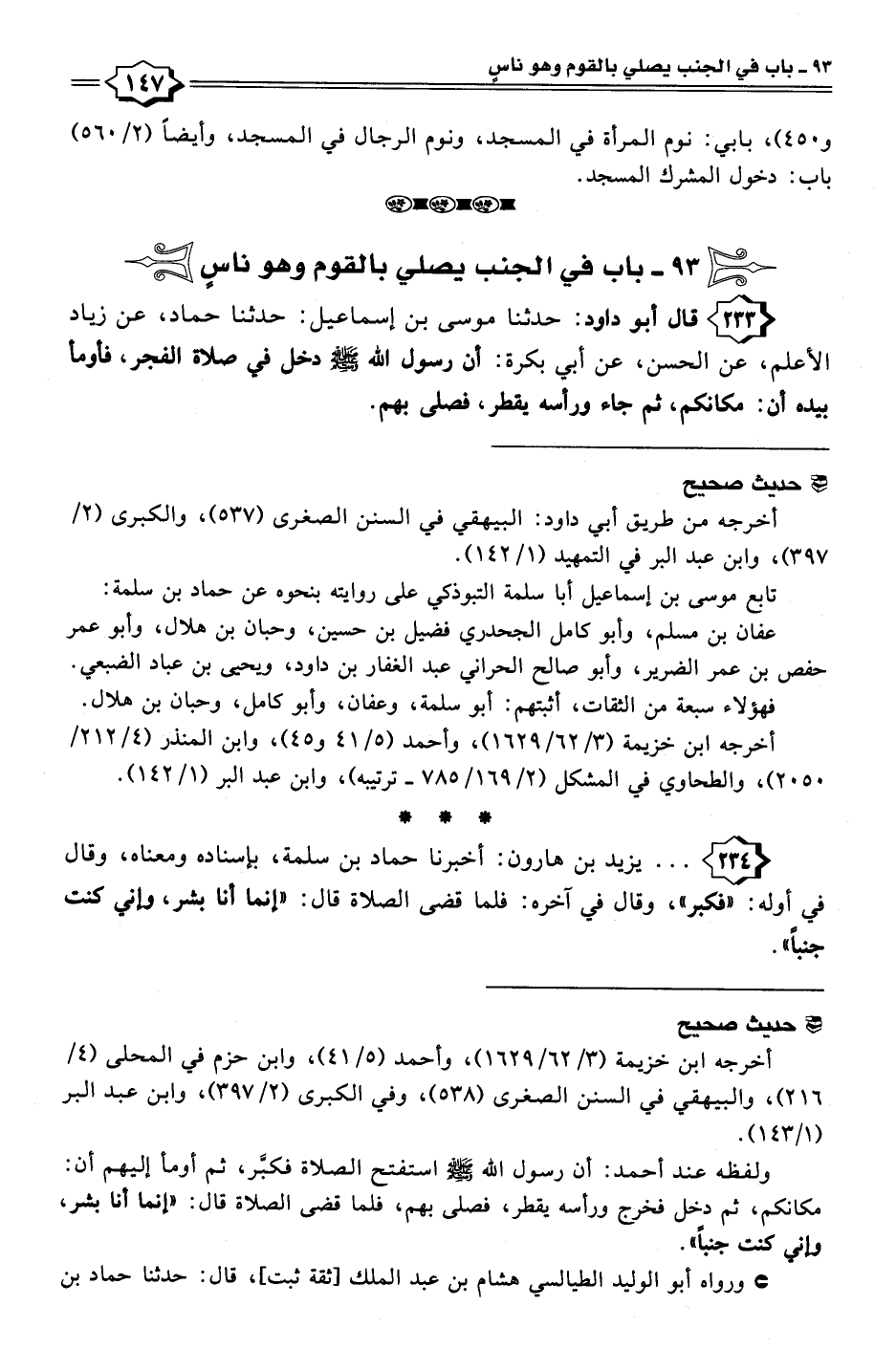 ٩٣ - باب في الجنب يصلي بالقوم وهو ناسٍ