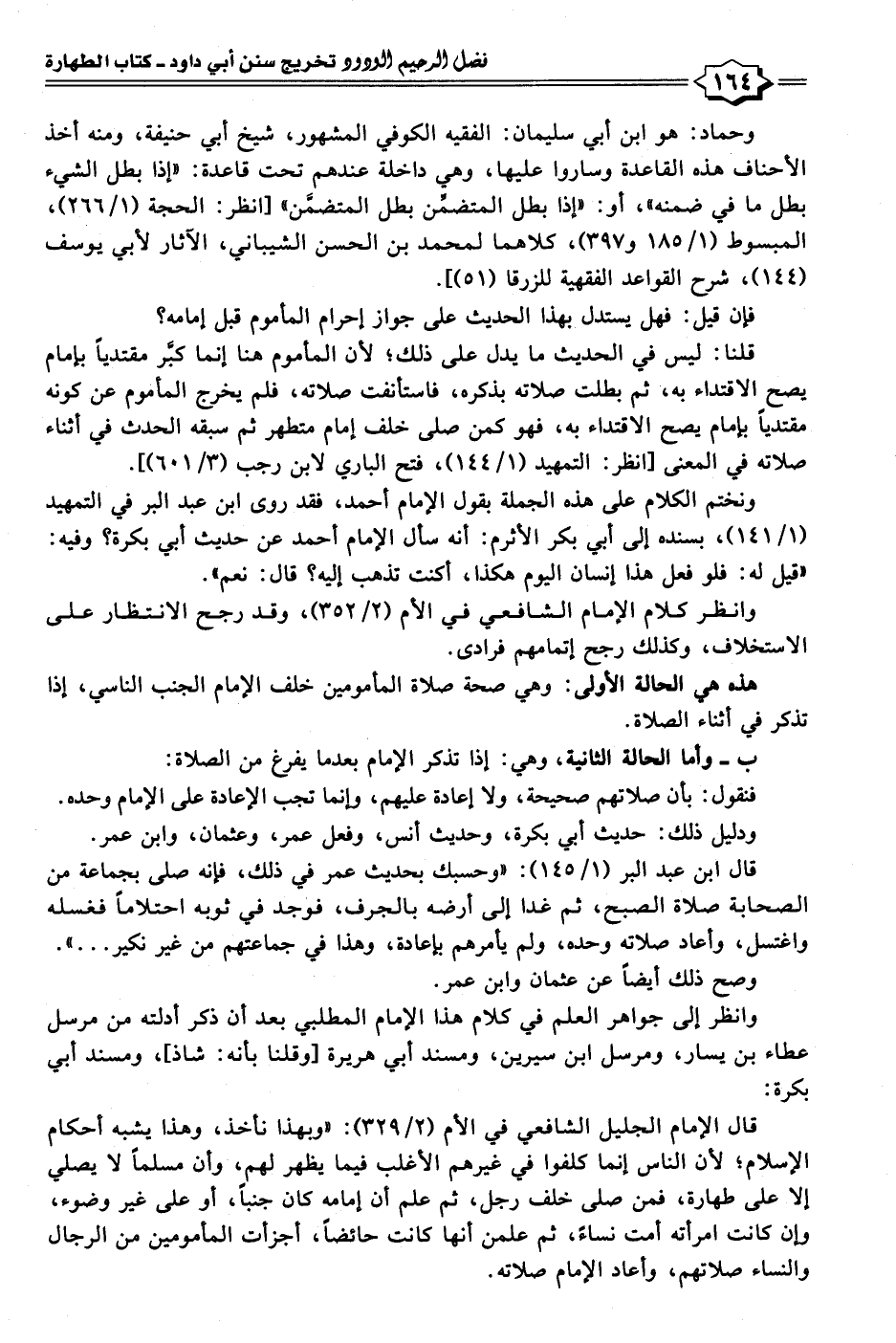 وحماد: هو ابن أبي سليمان: الفقيه الكوفي المشهور، شيخ أبي حنيفة، ومنه أخذ الأحناف هذه القاعدة وساروا عليها، وهي داخلة عندهم تحت قاعدة: "إذا بطل الشيء بطل ما في ضمنه"، أو: "إذا بطل المتضمِّن بطل المتضمَّن" [انظر: الحجة (١/ ٢٦٦)، المبسوط (١/ ١٨٥ و ٣٩٧)، كلاهما لمحمد بن الحسن الشيباني، الآثار لأبي يوسف (١٤٤)، شرح القواعد الفقهية للزرقا (٥١)].