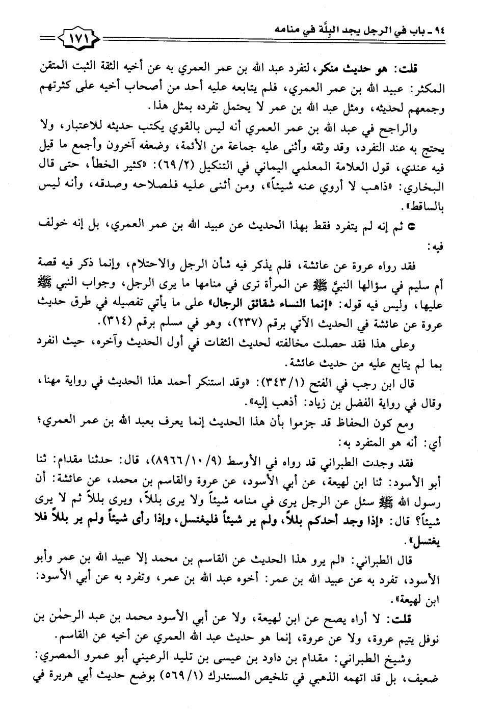 ومع كون الحفاظ قد جزموا بأن هذا الحديث إنما يعرف بعبد الله بن عمر العمري؛ أي: أنه هو المتفرد به: