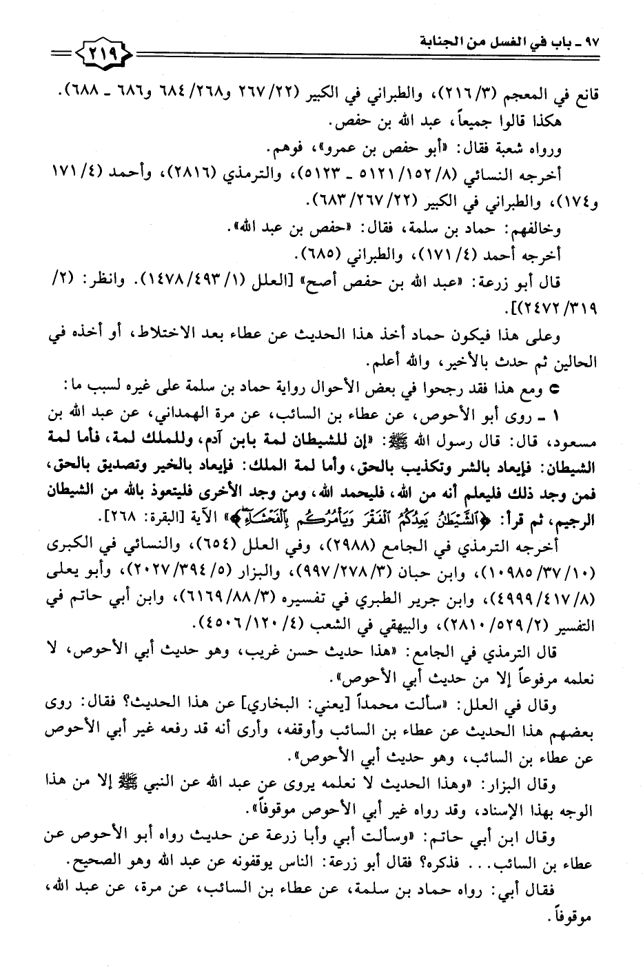 وقال ابن أبي حاتم: "وسألت أبي وأبا زرعة عن حديث رواه أبو الأحوص عن عطاء بن السائب ... فذكره؟ فقال أبو زرعة: الناس يوقفونه عن عبد الله وهو الصحيح.