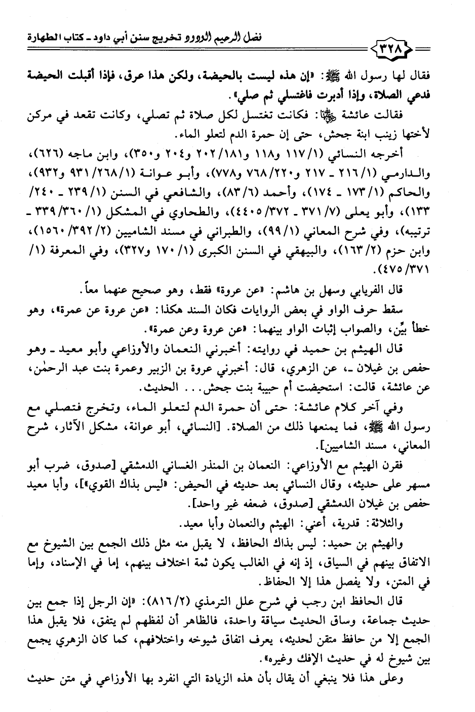 قال الهيثم بن حميد في روايته: أخبرني النعمان والأوزاعي وأبو معيد -وهو حفص بن غيلان-، عن الزهري، قال: أخبرني عروة بن الزبير وعمرة بنت عبد الرحمن، عن عائشة، قالت: استحيضت أم حبيبة بنت جحش ... الحديث.