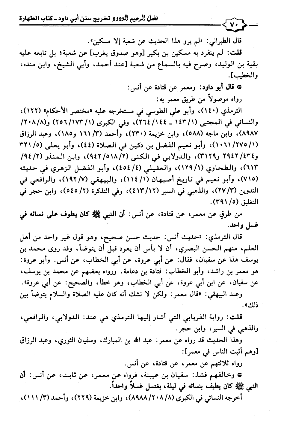 من طرقٍ عن معمر، عن قتادة، عن أنس: أن النبي - صلى الله عليه وسلم - كان يطوف على نسائه في غسل واحد.