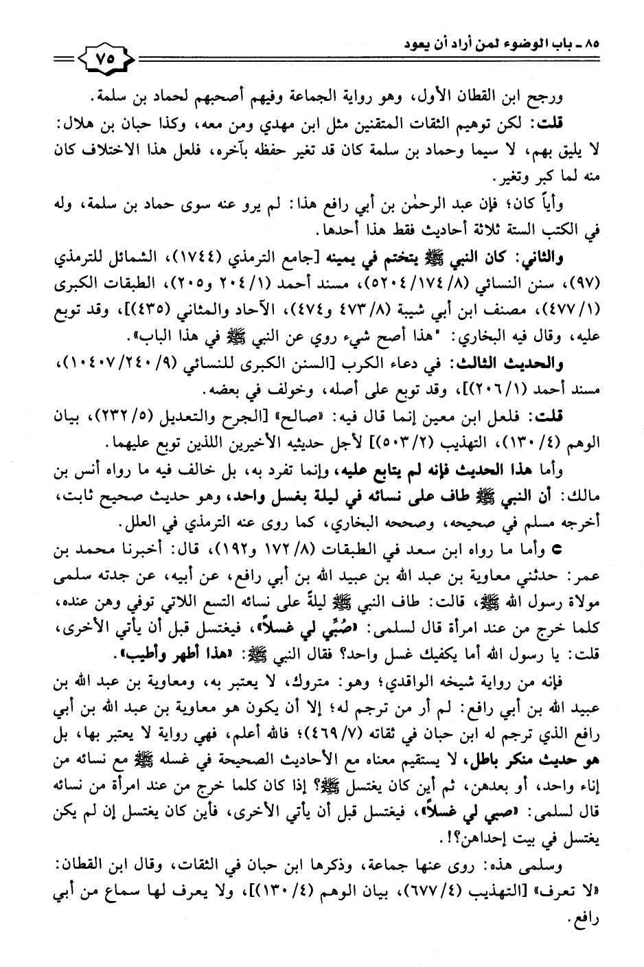 قلت: لكن توهيم الثقات المتقنين مثل ابن مهدي ومن معه، وكذا حبان بن هلال: لا يليق بهم، لا سيما وحماد بن سلمة كان قد تغير حفظه بآخره، فلعل هذا الاختلاف كان منه لما كبر وتغير.