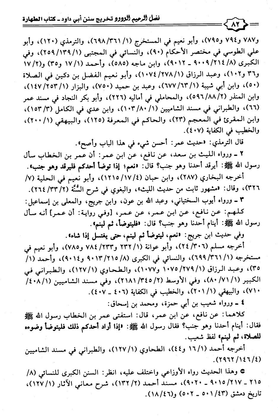 • وهذا الحديث رواه الأوزاعي واختلف عليه، انظر: السنن الكبرى للنسائي (٨/ ٢١٥ - ٢١٧/ ٩٥١٥ - ٩٠٢٠)، مسند أحمد (٢/ ١٣٢)، شرح معاني الآثار (١/ ١٢٧)، تاريخ دمشق (٤٣/ ٥٠١ - ٥٠٢) و (٤٦/ ١٨).