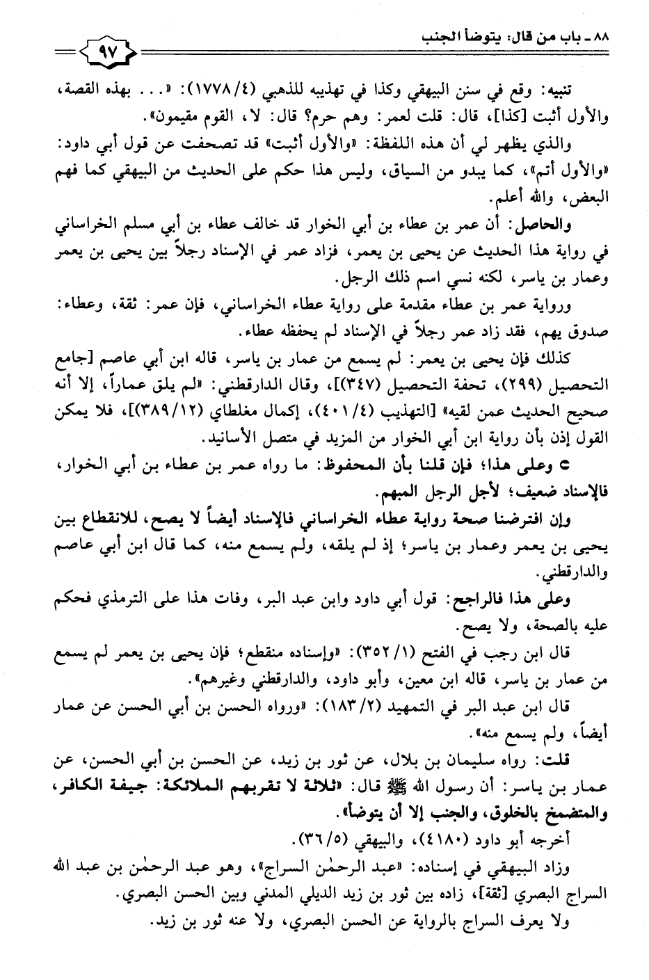 قال ابن رجب في الفتح (١/ ٣٥٢): "وإسناده منقطع؛ فمن يحيى بن يعمر لم يسمع من عمار بن ياسر، قاله ابن معين، وأبو داود، والدارقطني وغيرهم".