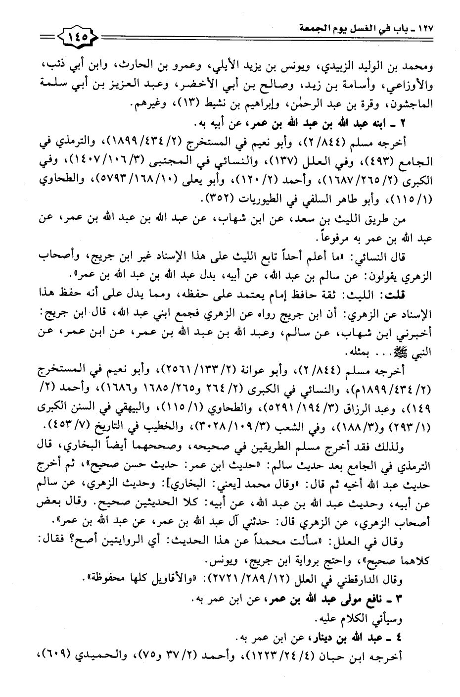 قال النسائي: "ما أعلم أحدًا تابع الليث على هذا الإسناد غير ابن جريج، وأصحاب الزهريّ يقولون: عن سالم بن عبد الله، عن أبيه، بدل عبد الله بن عبد الله بن عمر".