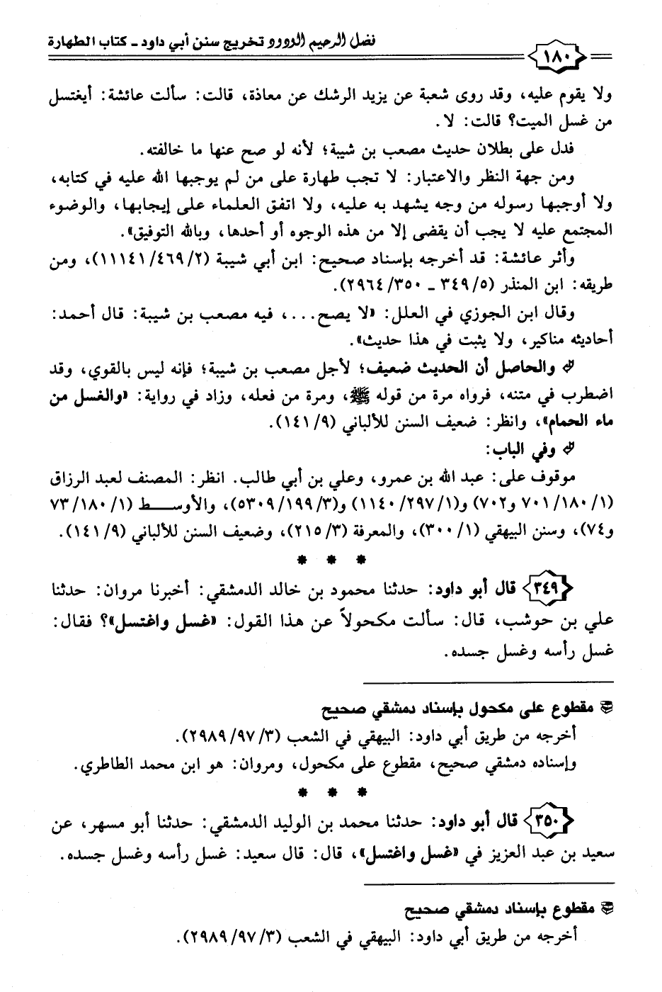 ٣٥٠ - قال أبو داود: حدثنا محمد بن الوليد الدمشقي: حدثنا أبو مسهر، عن سعيد بن عبد العزيز في "غسل واغتسل"، قال: قال سعيد: غسل رأسه وغسل جسده.